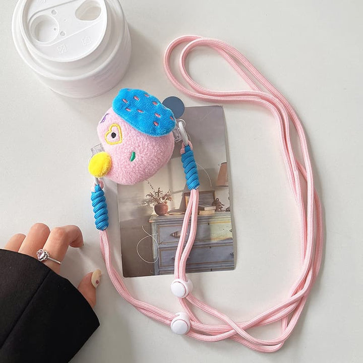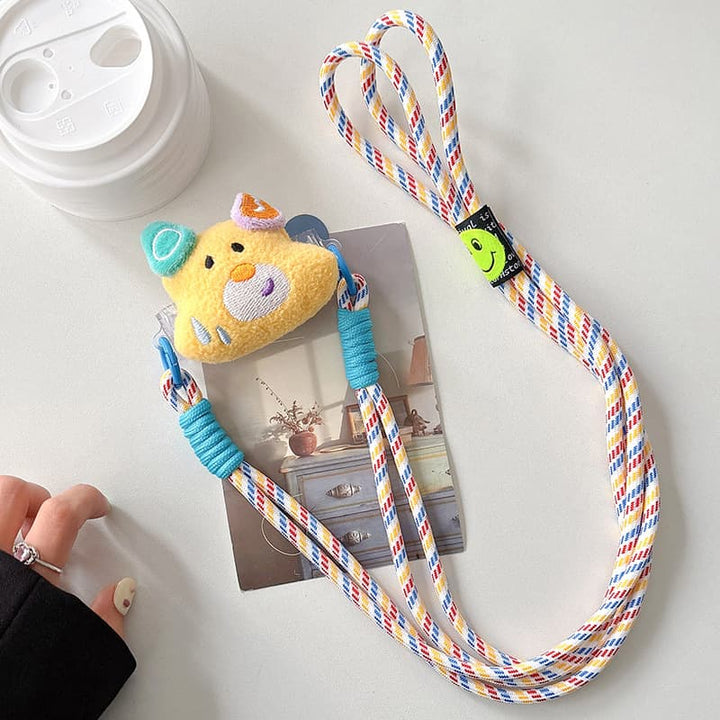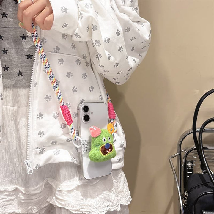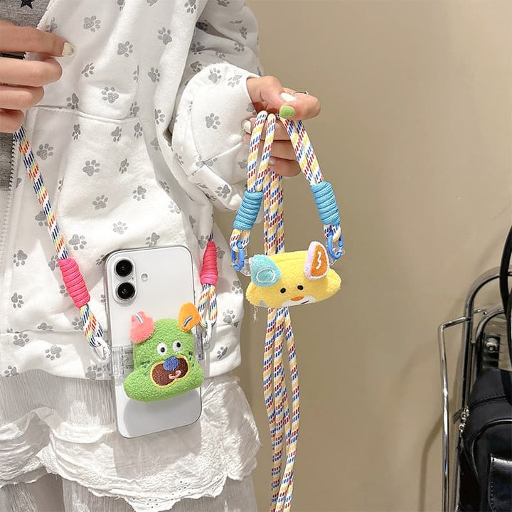 Dopamine Cartoon Plush Phone Clip with Thick Crossbody Strap