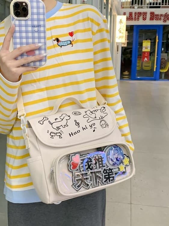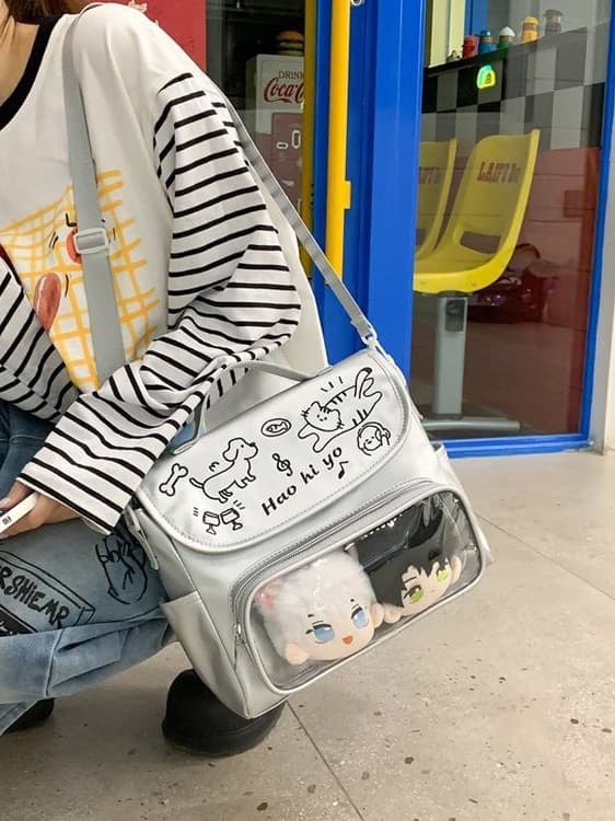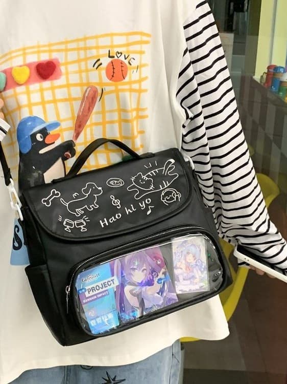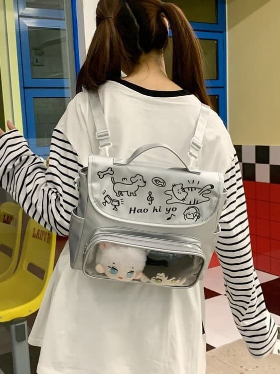 Japanese Style Original Graffiti Backpack Cute Transparent Ita Bag for Pins & Charms(No Doll Included)